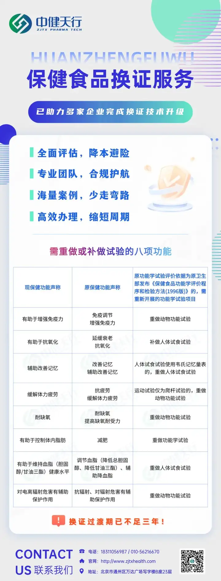 当前,“双无”换证已进入关键推进期,中健天行将持续发挥专业优势,聚焦企业合规痛点,联动各地监管部门搭建高效沟通桥梁。未来,随着更多企业完成“双无”产品规范升级,保健食品行业将迎来更为统一、透明、安全的市场环境,而规范打底、效率赋能的发展模式,也将成为行业高质量发展的核心底色,让合规企业在市场竞争中跑得更快、走得更稳。