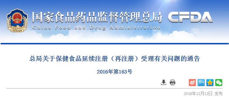 为加强和规范保健食品延续注册(再注册)管理,保障《保健食品注册与备案管理办法》平稳实施,经研究,现就保健食品延续注册(再注册)申请受理等有关事项通告如下: