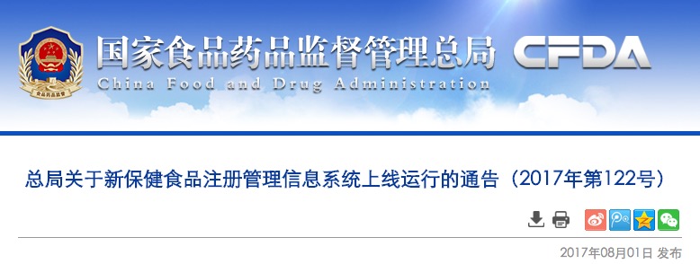 根据《保健食品注册与备案管理办法》《保健食品注册审评审批工作细则(2016年版)》《保健食品注册申请服务指南(2016年版)》相关规定,国家食品药品监督管理总局组织开发了新的保健食品注册管理信息系统,2017年8月1日正式上线运行。注册申请人可通过登录