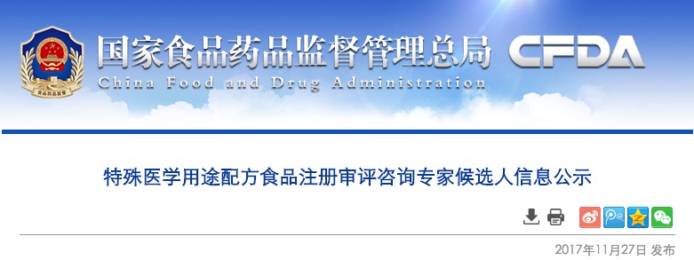 特殊医学用途配方食品注册审评咨询专家候选人信息公示
