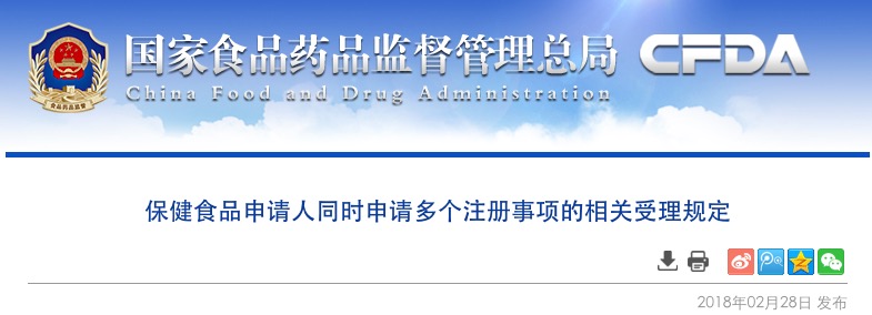 保健食品申请人同时申请多个注册事项的相关受理规定