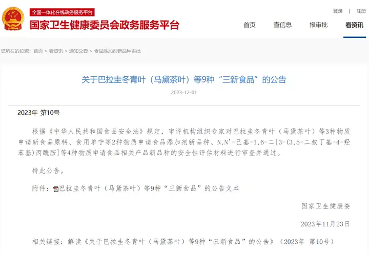 对于功能食品原料来说,“合规”就是生命线——而马黛茶的合规之路,走得格外顺畅。